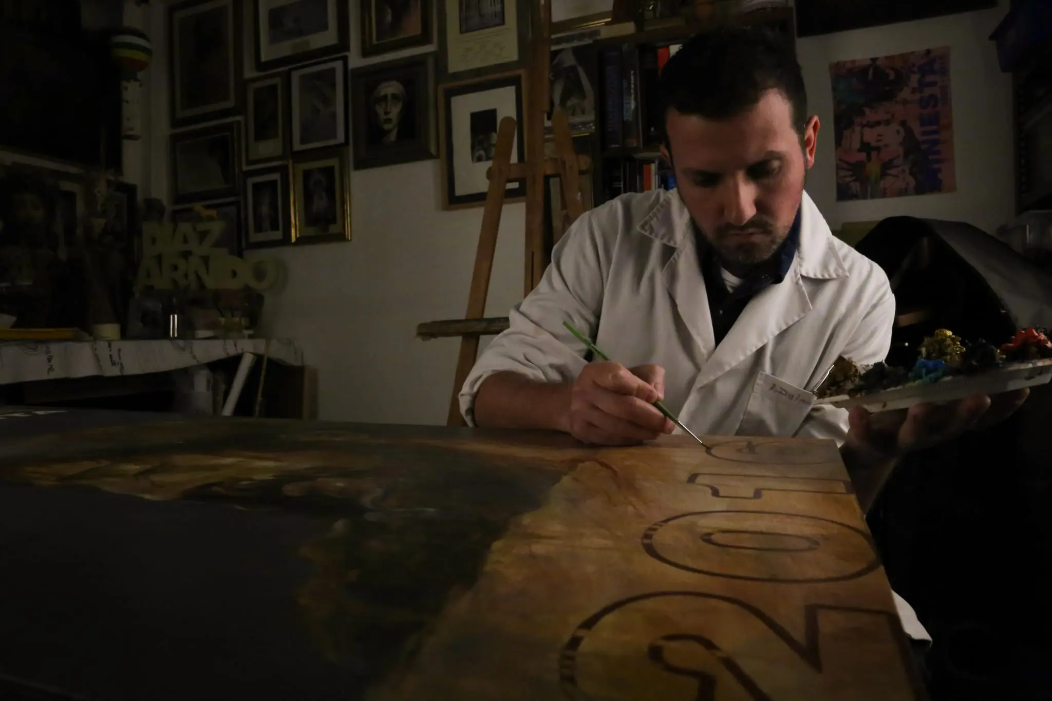 Díaz Arnido, miembro de la Comisión Artística de nuestra Hermandad, es licenciado en Bellas Artes por la Universidad de Sevilla. Pintor y restaurador con una larga trayectoria profesional, es un experimentado cartelista. Cuenta en su haber con los carteles para la Semana Santa de Jerez y Huelva, y ha sido designado para realizar el de la próxima Semana Santa de Cuenca. Además ha realizado el cartel de las Glorias de Sevilla y los carteles para diversos acontecimientos relevantes (coronaciones, aniversarios, etc.) a varias Hermandades de las provincias de Málaga, Cádiz, Huelva y Sevilla.