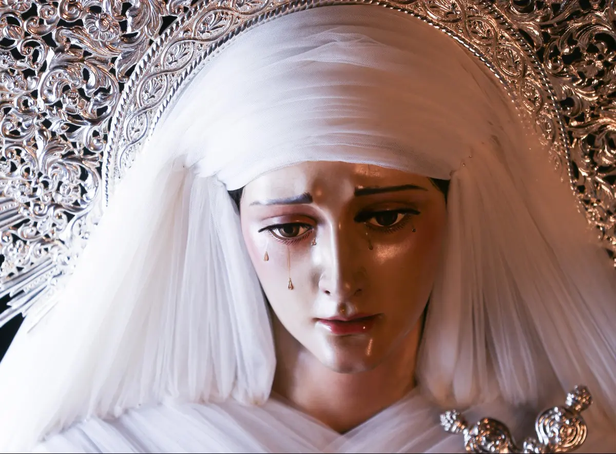 La Stma. Virgen estrena un cotilla hecha en punto ruso con cristales de Swarovski realizada por Alfonso Aguilar, donación de devotos.