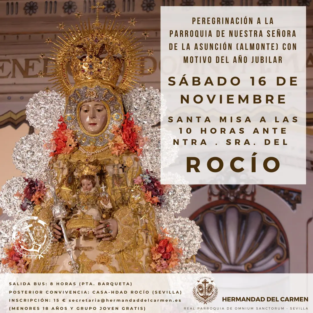 Una peregrinación, que este año, tiene una carácter jubilar al concederse Año Jubilar rociero y que se podrá ganar peregrinando al lugar donde se encuentre la imagen de Nuestra Señora del Rocío que, como sabemos, fue traslada el pasado mes de agosto hasta la Parroquia de Nuestra Señora de la Asunción en Almonte.